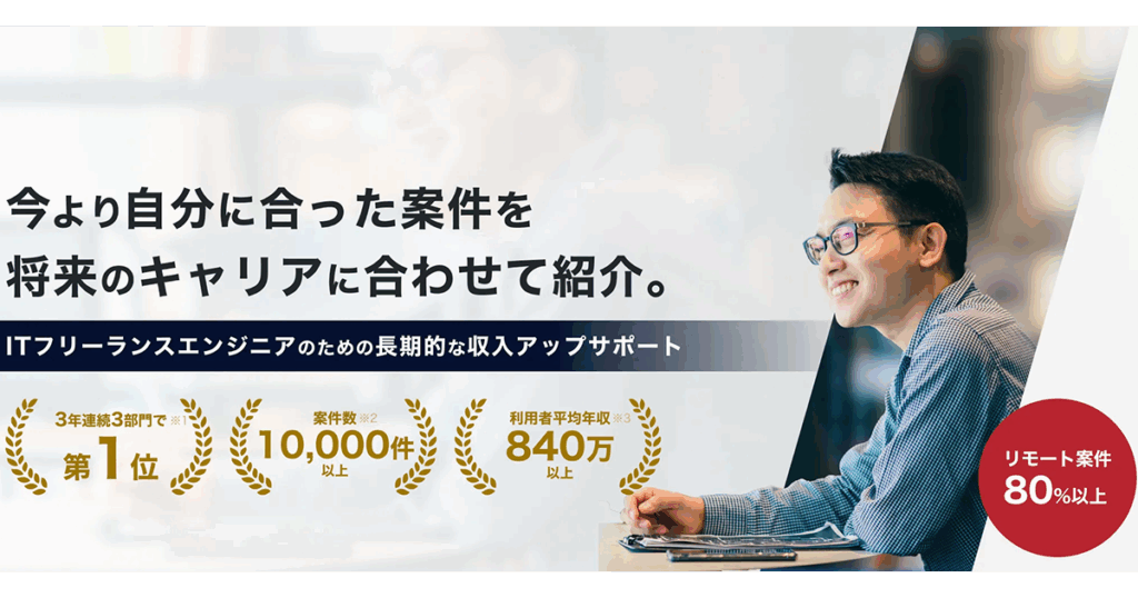 - 筆者体験:登録から10日で月85万円の案件に参画、単価交渉で現在は95万円にアップ。案件紹介は迅速で交渉力が高く、「安定」と「安心」を兼ね備えている と実感しています。